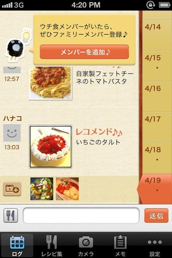 毎日の夕食のやりとりを、もっと手軽に、もっと楽しく-ごちレコ(以下、ごちレコ)は、夕飯に関するやりとりが手軽にできる新しいコミュニケーションアプリです。メンバー間で LINE のようなチャットとレシピ管理が簡単にでき、毎日の夕食が楽しみなること間違いなしです。